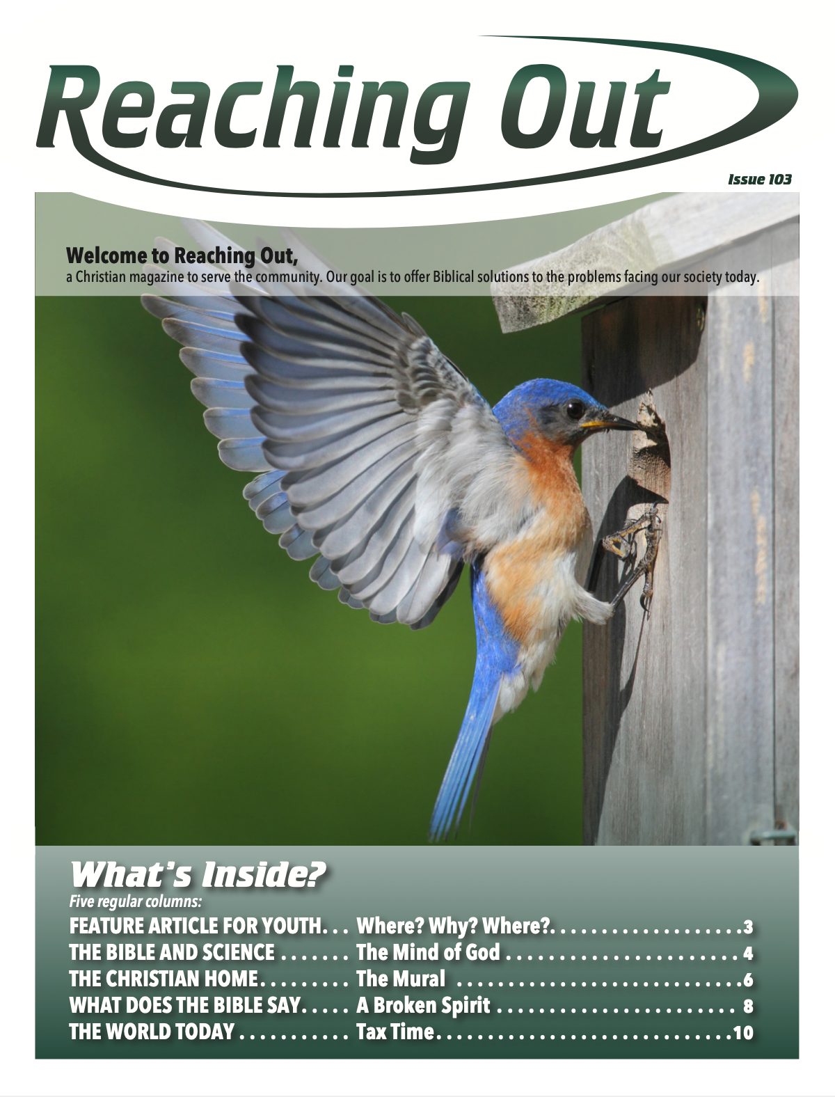 In this Issue: Where, Why, Where? The Mind of God, The Mural, A Broken Spirit, Tax Time